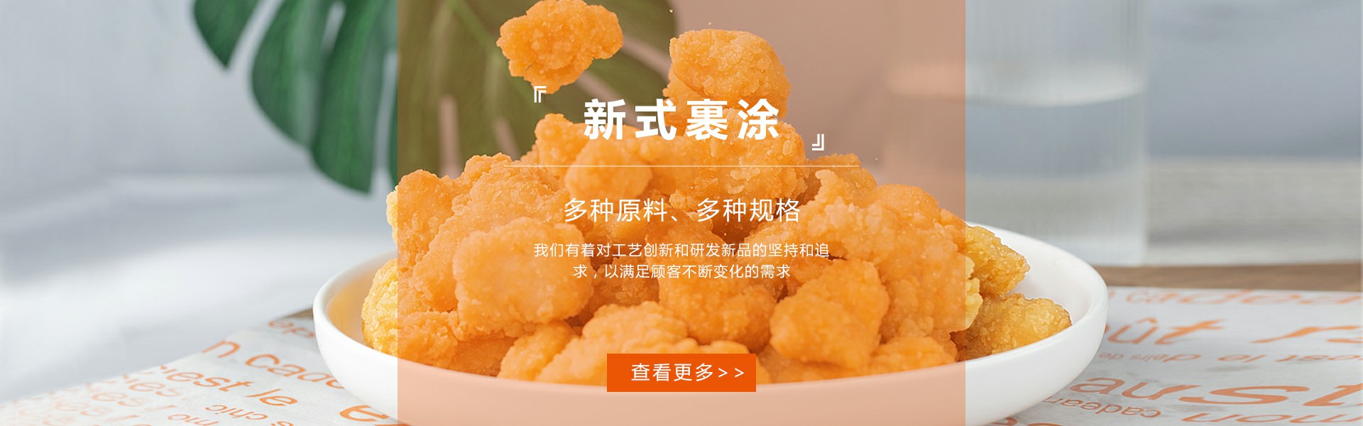 ? ? 公司的主要產(chǎn)品有:新式裹涂系列、復(fù)合調(diào)味料系列、裹漿粉系列、快餐食品系列等。